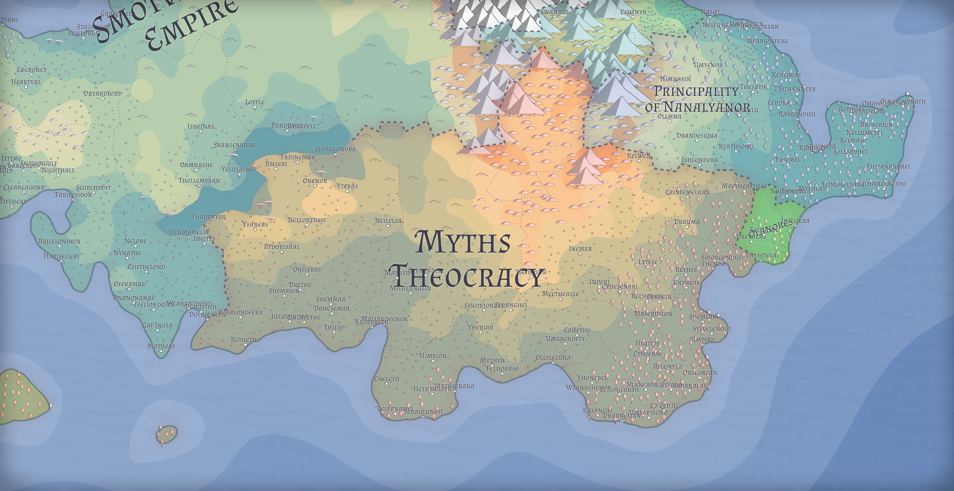 La Teocrazia di Myths è uno stato appartenente alla seconda Grande Isola di Poueria, situato nel sud.
